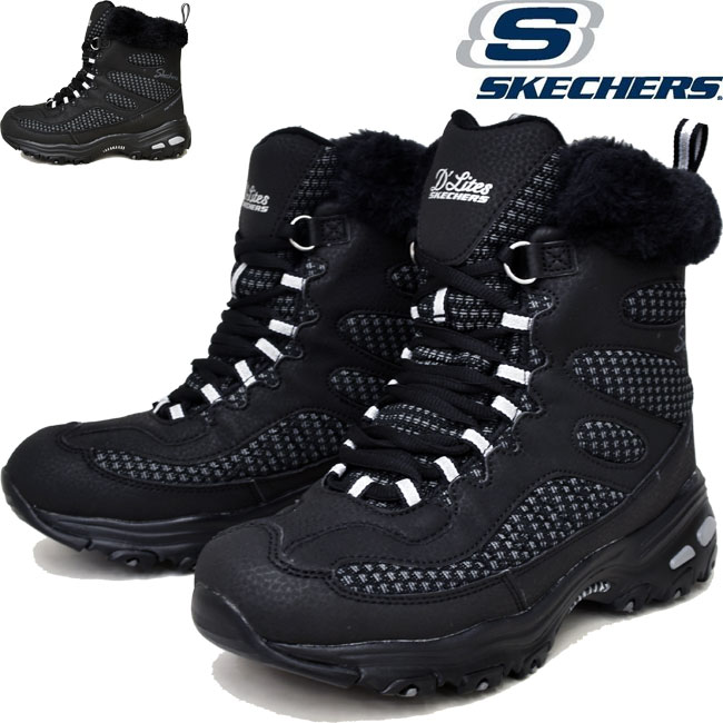 SKECHERS スケッチャーズ ブーツ ディライト D LITES 2.0-CHASING MOUNTAINS 48595 レディース ボア ファー 保温 防寒 厚底 スニーカー スリッポン あったか 低反発 歩きやすい スポーティ スポーツ カジュアル ブランド ディーライト 靴 黒